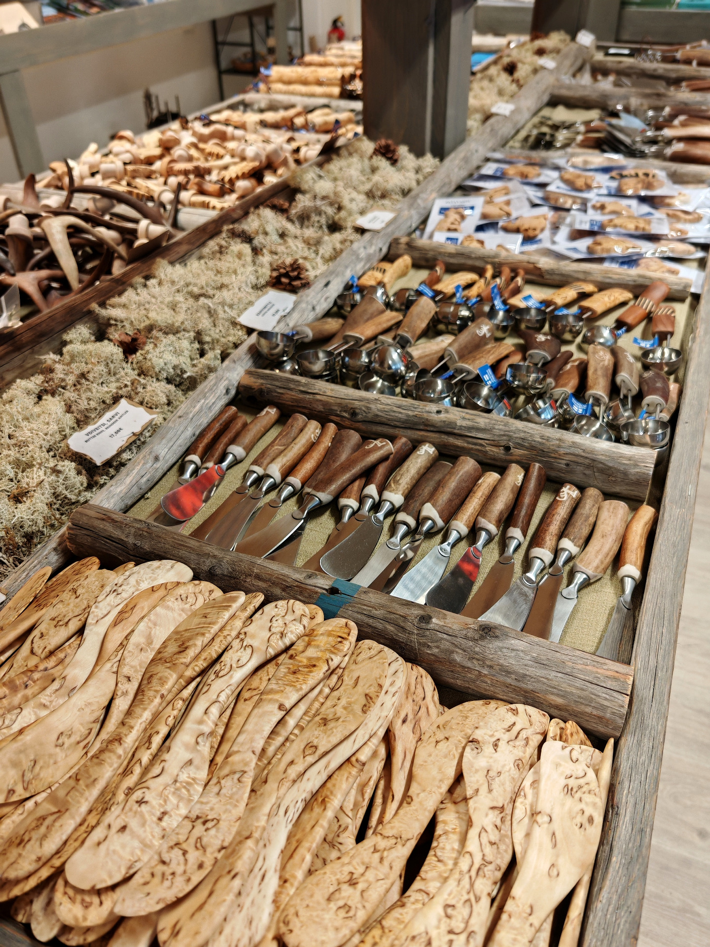 Paikallisuus on meille tärkeää. Käsityö-ja matkamuistovalikoimamme olemmekin koonneet suurilta osin paikallisten yrittäjien sekä lähialueiden toimijoiden tuotteista. Valikoimastamme löydät mm. nahkatuotteita ja -koruja, kuksia sekä puukkoja. Kirjavalikoima koostuu paikallisesta, Tornionjokilaakson kirjallisuudesta, meänkielisistä teoksista sekä erä- ja kalastuskirjoista.