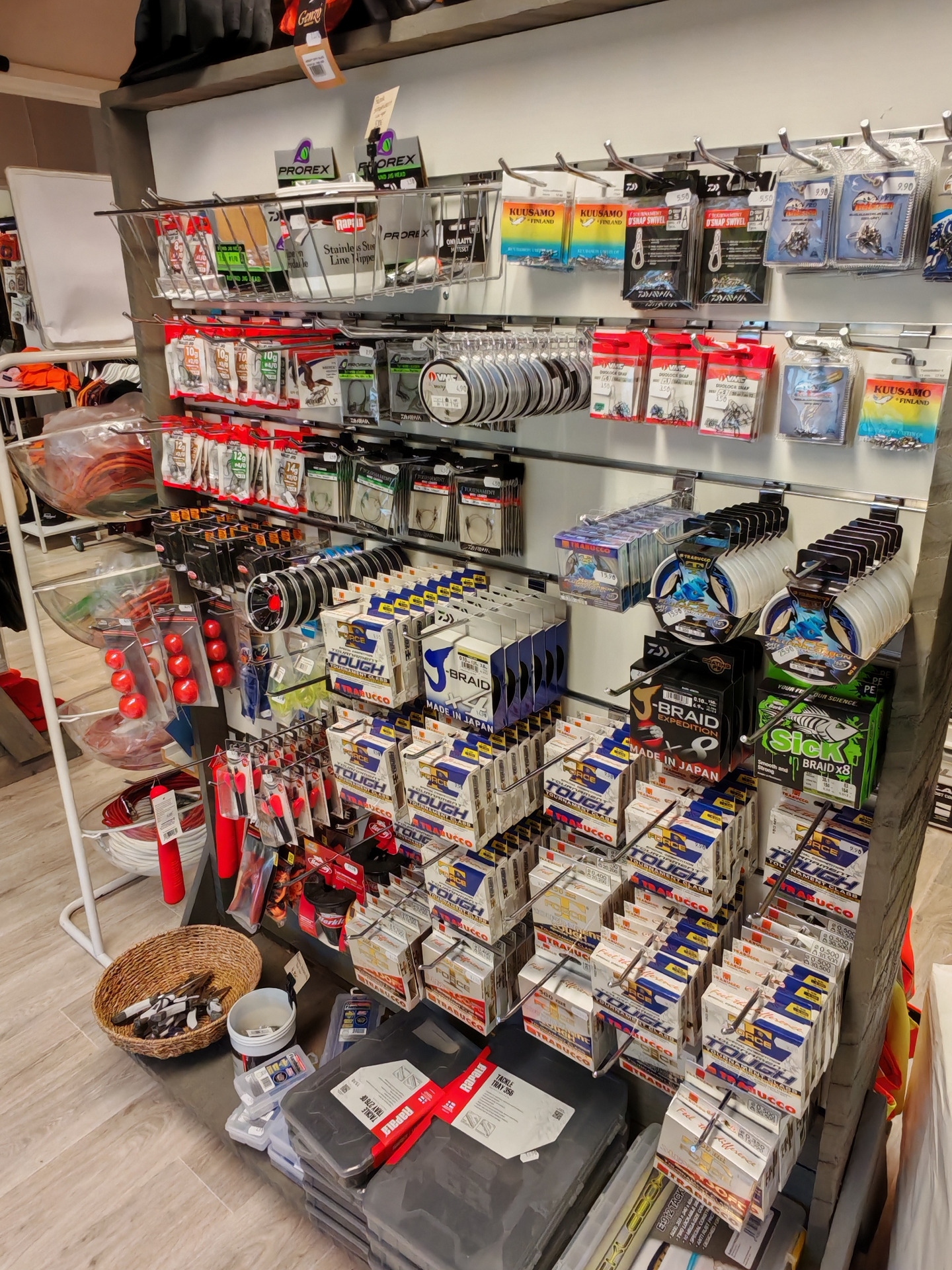 Monipuolinen kalastuskategoriamme koostuu perustarvikkeista niin lohensoutuun, jigikalastukseen, perhokalastukseen, uisteluun ja ongintaan. Talvikalastuksen osalta olemme erikoistuneet pohjoisen vesien tarvikkeisiin; mm. raudunpyynnissä luotamme Rovaniemellä käsintehtyihin rautu-kosseihin. Meiltä myös verkkotarvikkeet kesä- ja talviverkkokalastukseen.